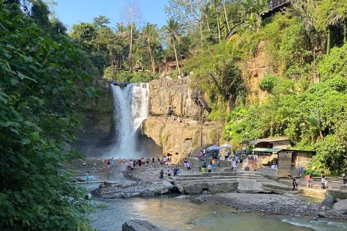 Tegenungan Waterfall in Blahbatuh for a serene ambiance. Overnight stay in the Kuta, Legian, or